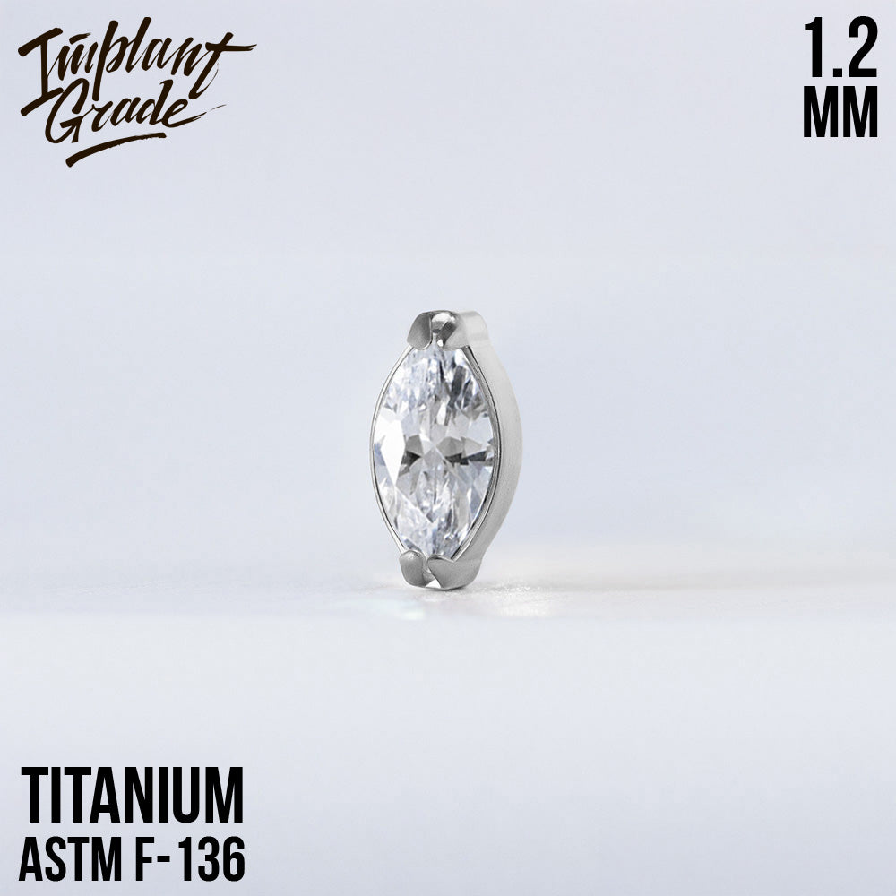 Four prong set gems top made of ASTM F-136 Titanium