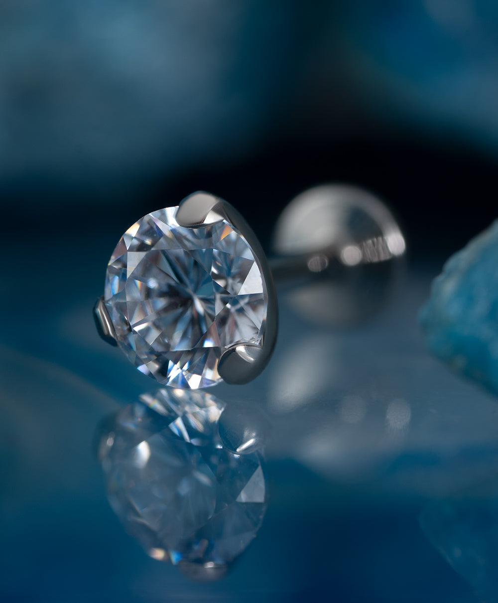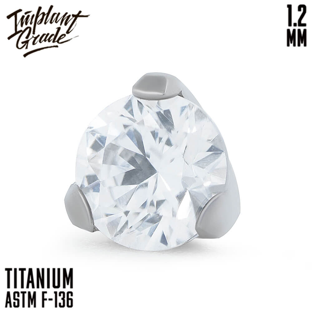 Three prong set gem top made of ASTM F-136 Titanium