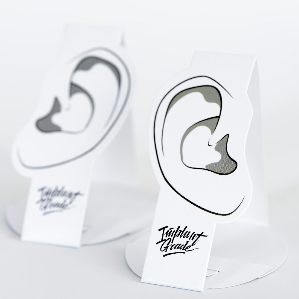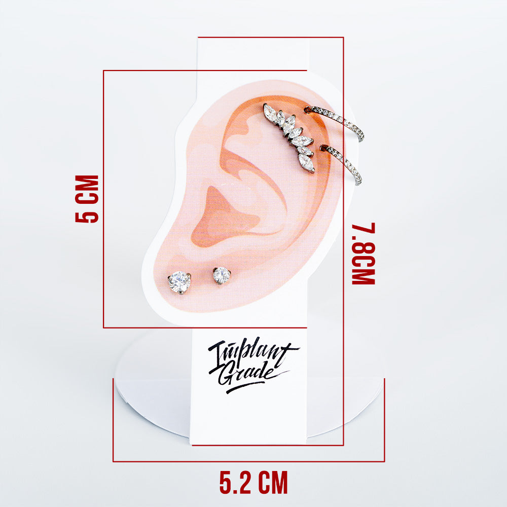 Ear shaped paper jewelry and attachments display base