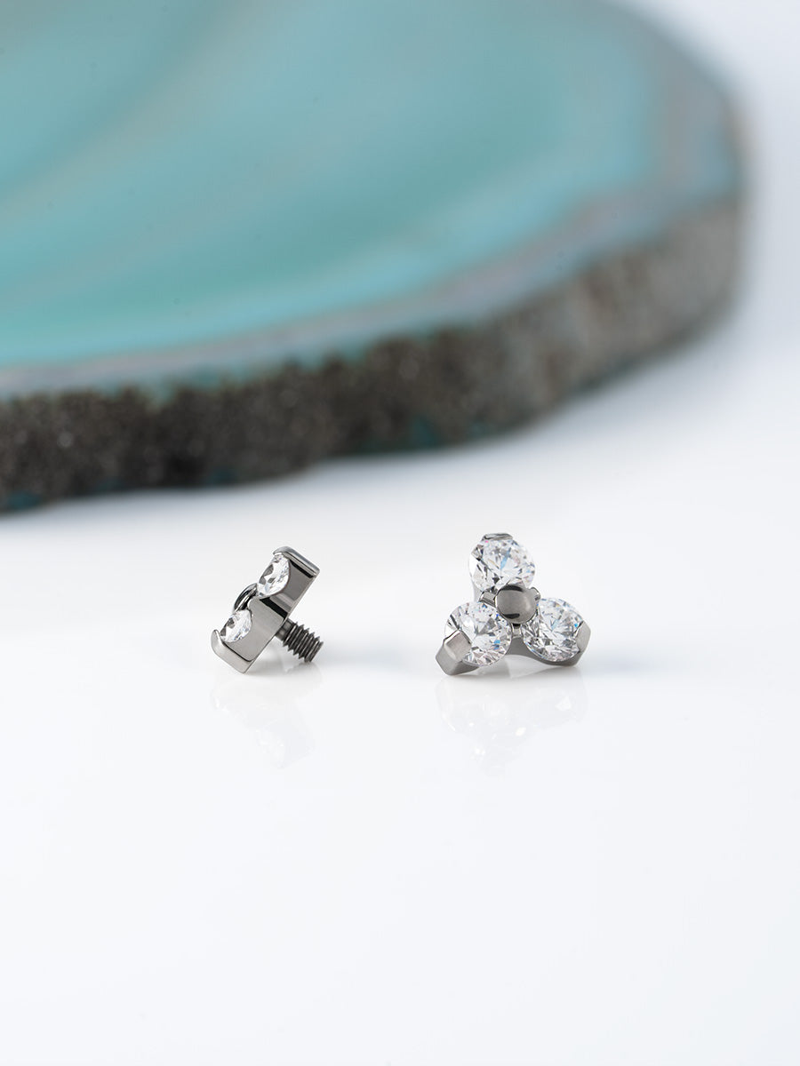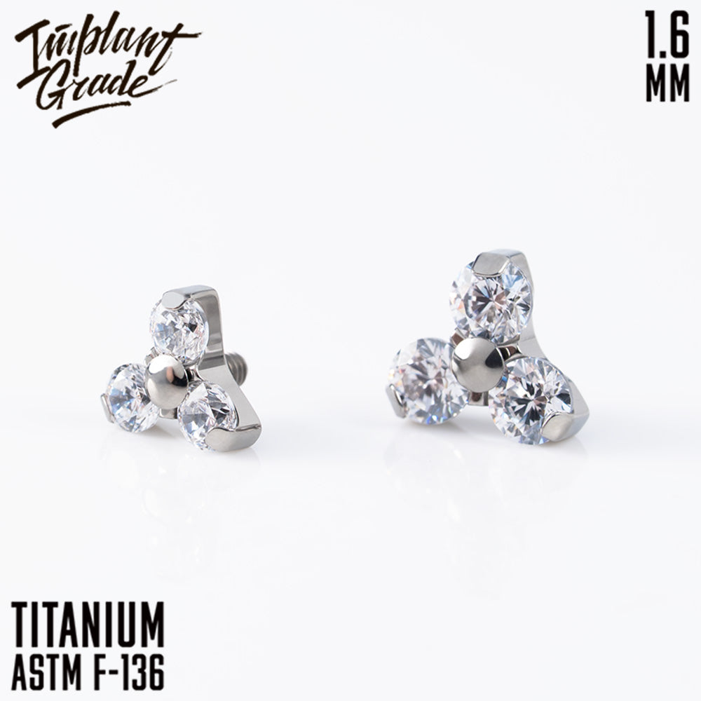 Three prong set gems top made of ASTM F-136 Titanium