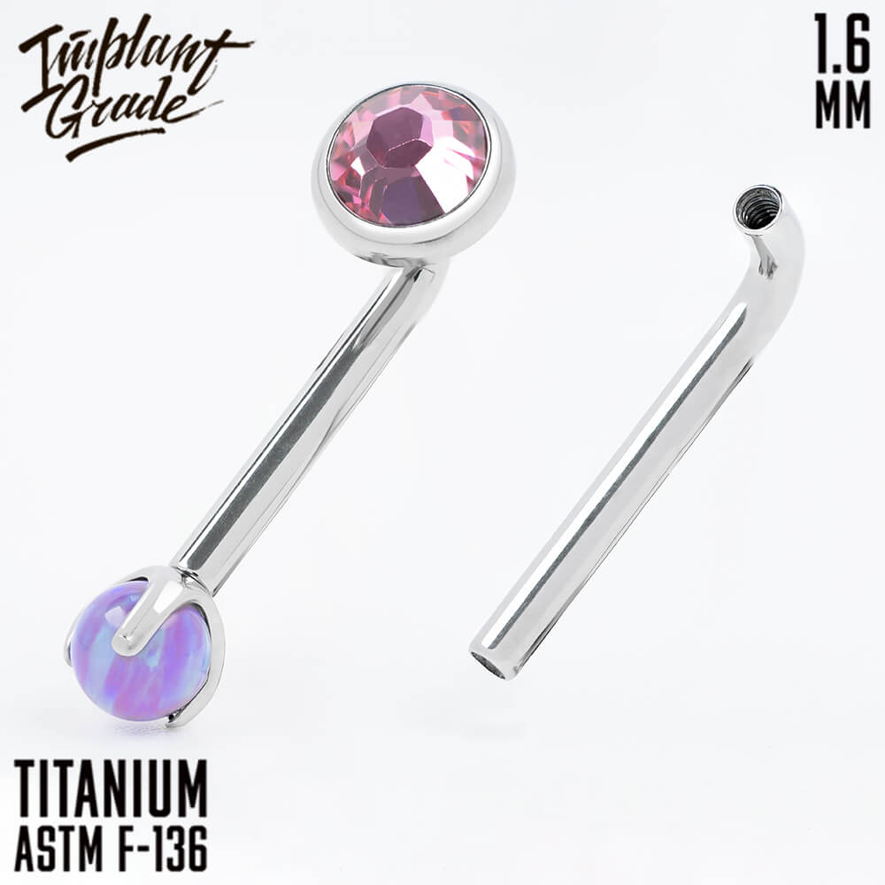 Internally threaded L-shaped barbell made of ASTM F-136 Titanium