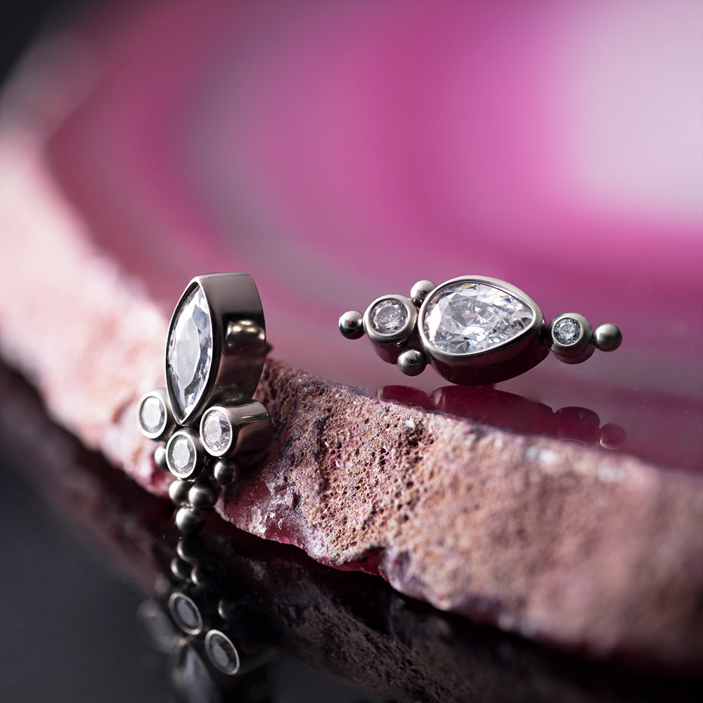 Featuring CZ crystals and titanium beads