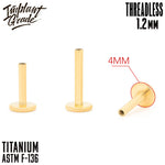 Threadless Gold labret post 1.2 (16 G) base 4 mm