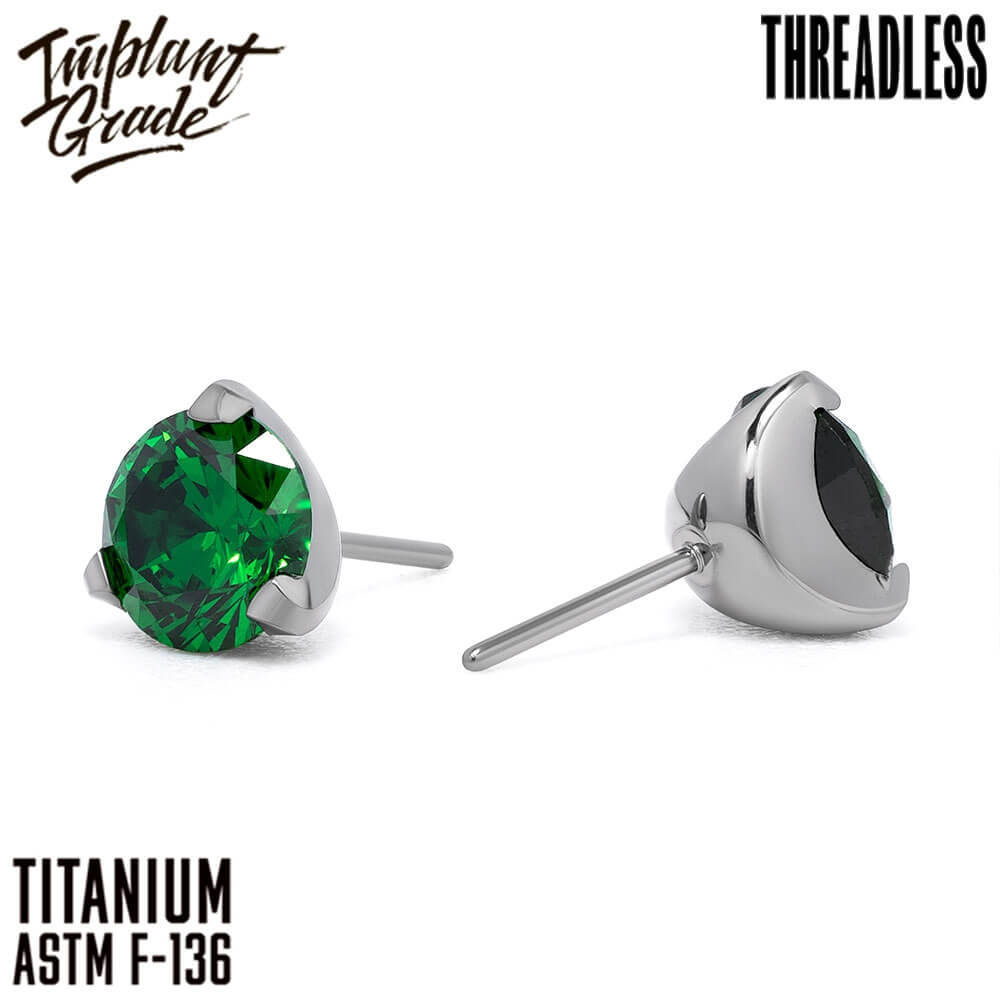 Threadless three prong set gem push pin top made of ASTM F-136 Titanium