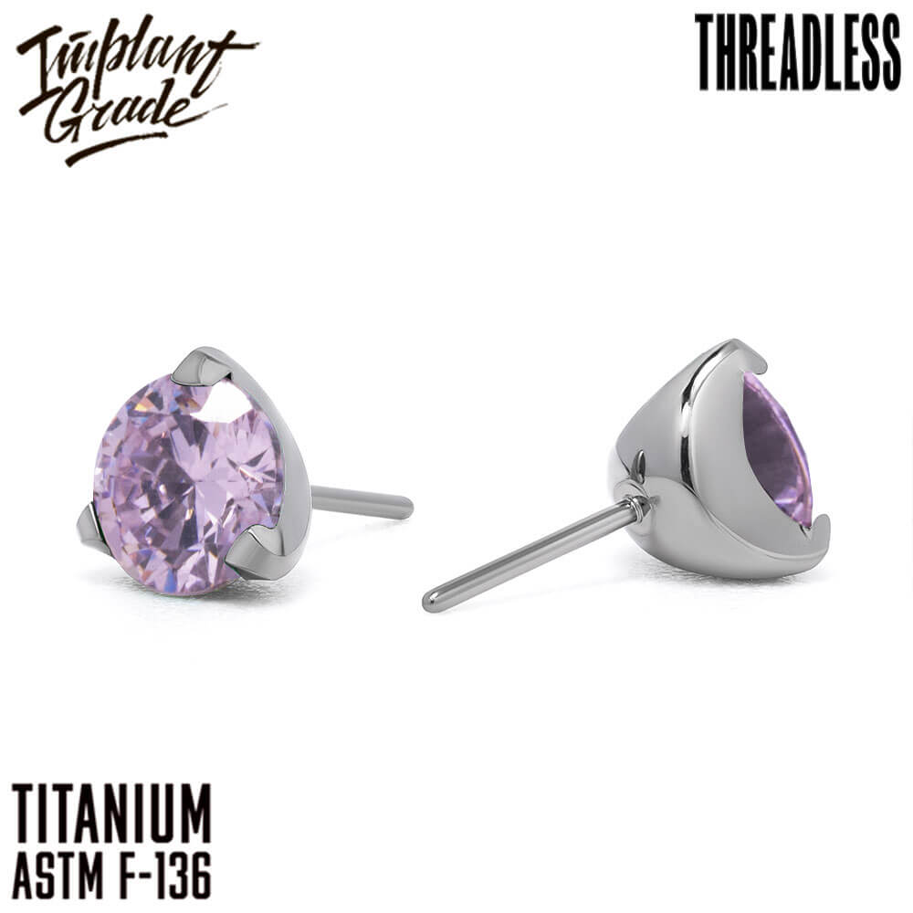 Threadless three prong set gem push pin top made of ASTM F-136 Titanium
