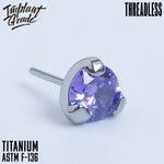 Threadless three prong set gem push pin top made of ASTM F-136 Titanium